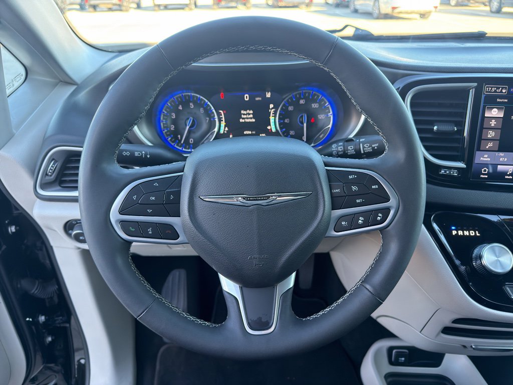 This unit keeps you comfortable with Auto Climate. This unit's Lane Departure Warning helps keep you in your lane. This model has automated speed control that adjusts to maintain a safe following distance, enhancing highway driving convenience. Start the vehicle from inside with remote start. This mini van is pure luxury with a heated steering wheel. The rear parking assist technology on this Chrysler Pacifica will put you at ease when reversing. The system alerts you as you get closer to an obstruction. This mini van's Forward Collision Warning feature alerts drivers to potential front-end collisions. This Chrysler Pacifica features a hands-free Bluetooth phone system. The leather seats in this unit are a must for buyers looking for comfort, durability, and style. The vehicle offers Android Auto for seamless smartphone integration. See what's behind you with the back up camera on this 2024 Chrysler Pacifica . This model offers Apple CarPlay for seamless connectivity.