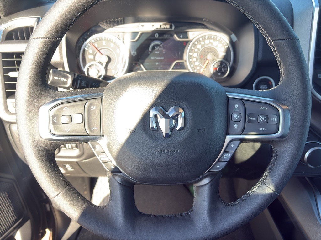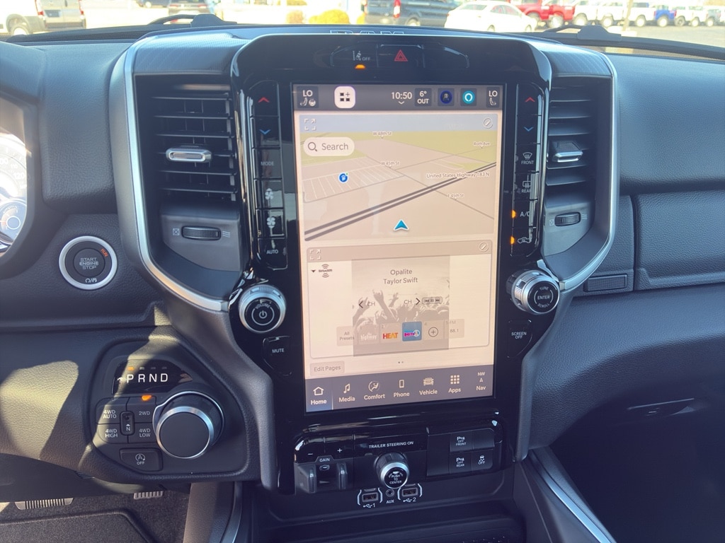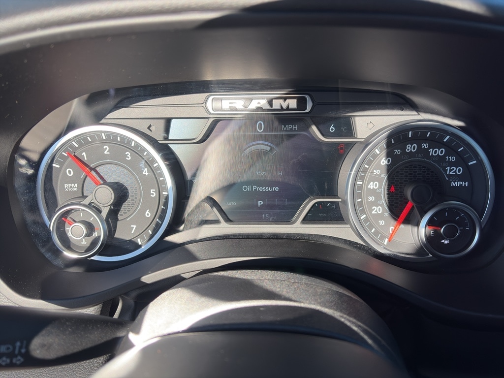 Bluetooth technology is built into it, keeping your hands on the steering wheel and your focus on the road. The state of the art park assist system will guide you easily into any spot. This Ram 1500's Forward Collision Warning feature alerts drivers to potential front-end collisions. See what's behind you with the back up camera on the vehicle. It has automated speed control that adjusts to maintain a safe following distance, enhancing highway driving convenience. This Ram 1500 comes equipped with Android Auto for seamless smartphone integration on the road. This vehicle offers Apple CarPlay for seamless connectivity. Never get into a cold vehicle again with the remote start feature on this 1/2 ton pickup. The Ram 1500 is painted with a sleek and sophisticated black color. When you encounter slick or muddy roads, you can engage the four wheel drive on this model and drive with confidence. The Ram 1500 has a V8, 5.7L high output engine.