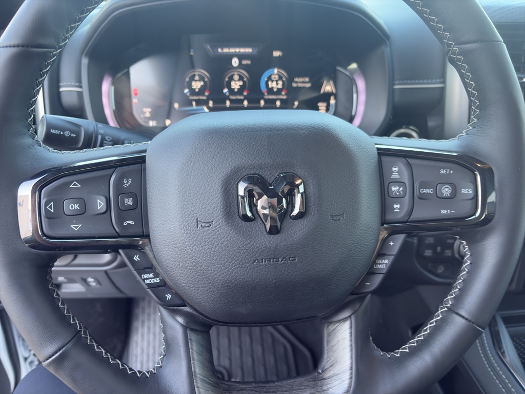 This model offers Apple CarPlay for seamless connectivity. Protect this Ram 1500 from unwanted accidents with a cutting edge backup camera system. You'll never again be lost in a crowded city or a country region with the navigation system on the Ram 1500. It's Forward Collision Warning system alerts the driver to potential front-end collisions, enhancing safety. This unit has automated speed control that adjusts to maintain a safe following distance, enhancing highway driving convenience. Start this 1/2 ton pickup from inside with remote start. This unit comes equipped with Android Auto for seamless smartphone integration on the road. Bluetooth technology is built into this model, keeping your hands on the steering wheel and your focus on the road. Keep your hands warm all winter with a heated steering wheel in the Ram 1500 . The leather seats in the Ram 1500 are a must for buyers looking for comfort, durability, and style.