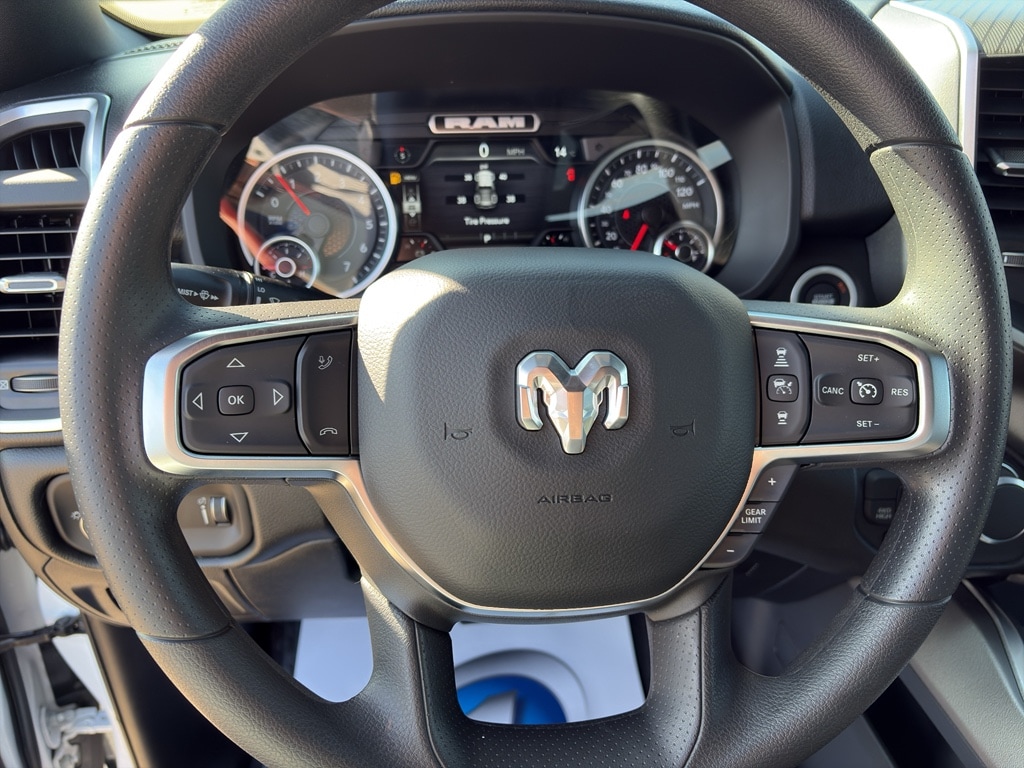 It has automated speed control that adjusts to maintain a safe following distance, enhancing highway driving convenience. It offers Android Auto for seamless smartphone integration. The rear parking assist technology on this vehicle will put you at ease when reversing. The system alerts you as you get closer to an obstruction. Apple CarPlay: Seamless smartphone integration for this model - stay connected and entertained on the go! with XM/Sirus Satellite Radio you are no longer restricted by poor quality local radio stations while driving this unit. Anywhere on the planet, you will have hundreds of digital stations to choose from. Protect this Ram 1500 from unwanted accidents with a cutting edge backup camera system. This 1/2 ton pickup has satellite radio capabilities. An off-road package is equipped on this Ram 1500. Never get into a cold vehicle again with the remote start feature on this 1/2 ton pickup. The Ram 1500's Forward Collision Warning system alerts the driver to potential front-end collisions, enhancing safety.