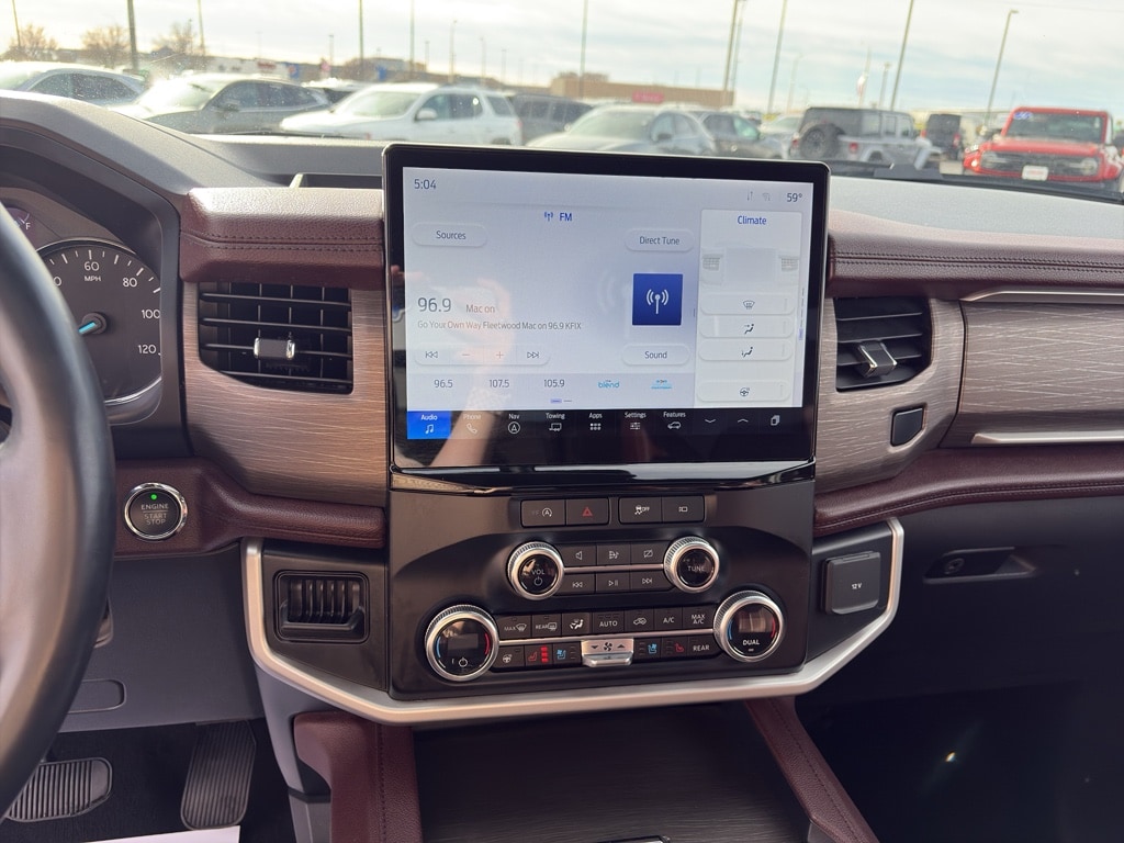 Equipment Group 302A High Package: Heated and Ventilated Leather Front Captain's Chairs; 22 12-Spoke Polished Aluminum Wheels; 7. 450 lbs GVWR; B&O Sound System by Bang and Olufsen; Ebony Black Mesh Grille; Power-Folding Sideview Mirrors with Autofold; Magnetic-Painted Power Deployable Running Boards; 10-Speed Automatic Transmission with SelectShift; Panoramic Vista Roof; 3.5L EcoBoost V6 Engine; Heavy-Duty Independent Suspension; P285/45R22 110H AS BSW Tires; 3.31 Axle Ratio. Ford Co-Pilot360 Assist 2.0: Connected Navigation; Reverse Brake Assist; 360-Degree Camera with Split View. Panoramic Vista Roof. 2nd Row Power-Folding 40/20/40 Leather Bench Seat. Mahogany. Advanced Cargo Manager. **Equipment listed is based on original vehicle build and subject to change. Please confirm the accuracy of the included equipment by calling the dealer prior to purchase.**