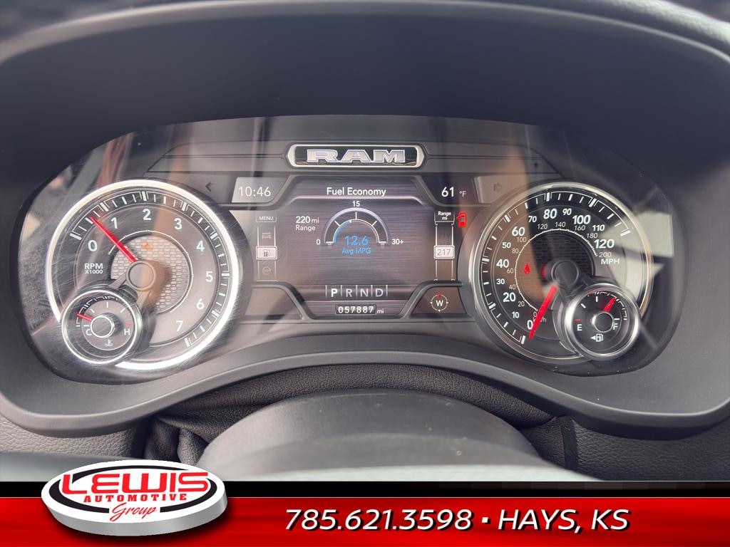 Quick Order Package 25Z Big Horn. Big Horn Level 2 Equipment Group: Rear Window Defroster; Auto-Dimming Rearview Mirror; Park-Sense Front and Rear Park Assist; Power Adjustable Pedals; Rear Power Sliding Window; Rear Dome Lamp with On/off Switch; Glove Box Lamp; Power 4-Way Driver Lumbar Adjust; 115V Rear Auxiliary Power Outlet; Power 8-Way Adjustable Driver Seat; Rear Media Hub with 2 USB Ports; Front Heated Seats; Heated Steering Wheel; Door Trim Panel Foam Bottle Insert; Class IV Receiver Hitch; Dampened Tailgate; Security Alarm; Black Power Fold Heated Mirrors with Signals; Big Horn Instrument Panel Badge; Remote Start System; 400W Inverter; A/C with Dual-Zone Automatic Temperature Control; 115V Auxiliary Power Outlet - Front; 7 Customizable In-Cluster Display; Universal Garage Door Opener; 2nd Row In-Floor Storage Bins; Sun Visors with Illuminated Vanity Mirrors; Uconnect 4 Radio with 8.4 Display. Sport Appearance Package: Centre Console Parts Module; Cloth Front Bucket Seats; Body-Colour Exterior Mirrors; Black Grille with Body Colour Surround; Black Interior Accents; Body-Colour Power Heated Power Fold Mirrors; Body-Colour Front Bumper; Body-Colour Door Handles; Auto Dimming Exterior Passenger Mirror; Body-Colour Rear Bumper with Step Pads; Bridgestone Brand Tires. 20 X 9 Premium Chrome-Clad Aluminum Wheels. Cloth Front Bucket Seats. Park-Sense Front and Rear Park Assist. Class IV Receiver Hitch. Remote Start System. SiriusXM Satellite Radio. Granite Crystal Metallic. 115V Auxiliary Power Outlet - Front. **Equipment listed is based on original vehicle build and subject to change. Please confirm the accuracy of the included equipment by calling the dealer prior to purchase.**