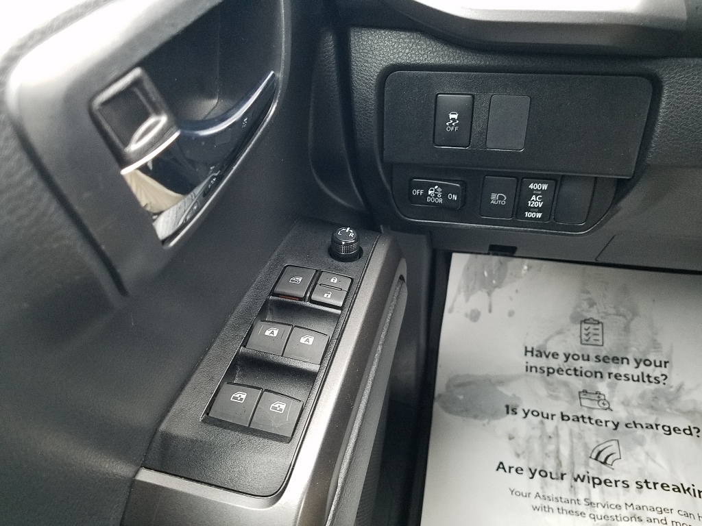 • TRD Sport Package: 17 Machined Alloy Wheels; Qi-Compatible Wireless Charger; 120V/400W Deck Mounted AC Power; Power Sliding Rear Window with Privacy Glass; Front Door Smart Key System with Push Button Start; Color-Keyed Overfenders; Engine Immobilizer; P265/65R17 All-Season Tires; Front Seats; Fabric Seat Trim